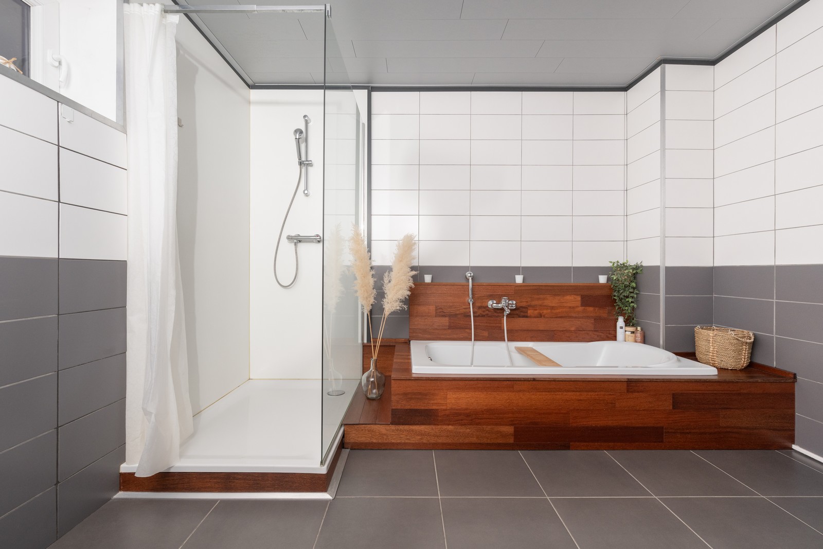 • Sdb Salle de bain avec baignoire et douche